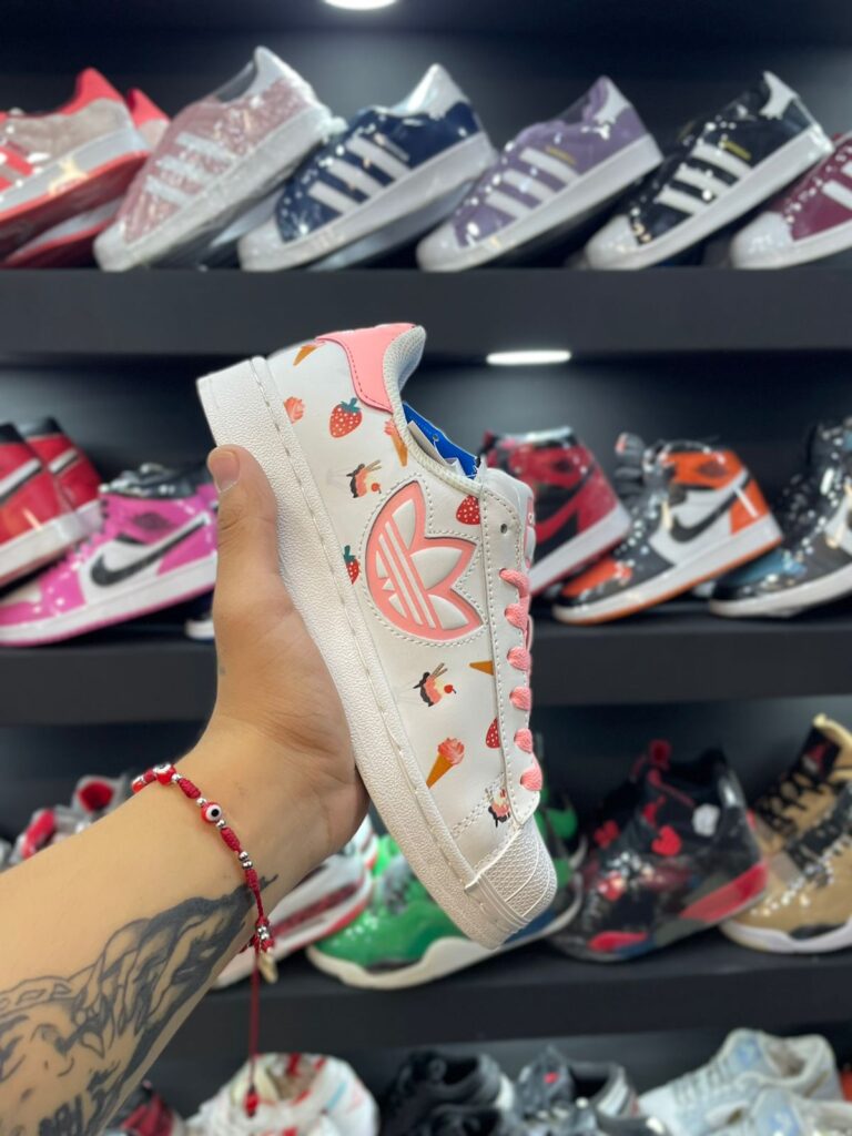 Camina suave y cómodamente con los Tenis Adidas Superstar Low “White-Pink” Strawberries para mujeres Estupendos para tu porte casual regular y combinarlos con lo que quieras. Este calzado casual en color blanco y rosa, hecho por ADIDAS, tiene una construcción de cuero. Lo que les brinda una mayor durabilidad y resistencia. Podrás ajustarlos sencillamente en tus pies, gracias a sus agujetas, tiras con velcro y lengüeta. Cuentan con una suela que está hecha de goma y espuma, esto te ayudará a tener pisadas extra suaves y una gran tracción, sin importar la superficie.