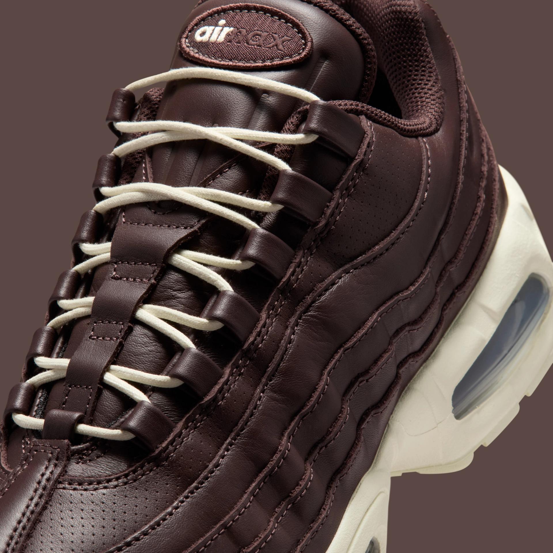 Las Nike Air Max 95 “Baroque Brown/Coconut Milk” reinterpretan el diseño icónico de Sergio Lozano con una construcción íntegra en cuero, tonos marrones profundos y contrastes en Coconut Milk que elevan la silueta a un terreno más sofisticado. Un lanzamiento previsto para la primavera de 2026 que confirma el giro premium de uno de los grandes clásicos de Nike.