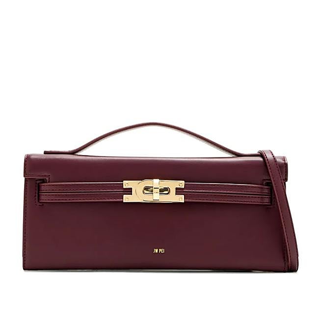 Bolso burdeos estructurado de JW Pei. Ha sido verlo y sentir un flechazo, porque este bolso es la prueba de que un diseño clásico puede ser moderno si tiene los detalles adecuados. Podrás llevarlo al hombro, o como bolso de mano, de día, o en tus looks de noche.
