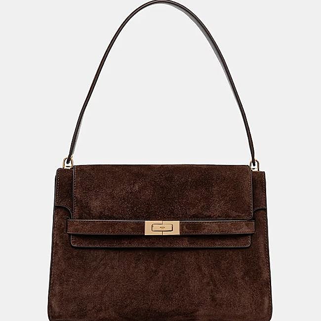 Bolso de hombro Lee Radziwill de Tory Burch. Este diseño inspirado en los iconos clásicos tiene todo lo que se necesita para convertirse en el bolso más sofisticado de tu colección. Es de ante de alta calidad, tiene una estructura impecable y sus herrajes aportan un toque distinto y muy especial.