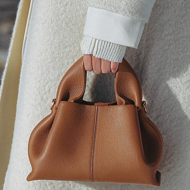 Bolso marrón de Totême. Con su silueta suave y su solapa minimalista, este bolso encarna el concepto de quiet luxury sin necesidad de logotipos. Es perfecto para quienes buscan discreción, calidad y funcionalidad en partes iguales.