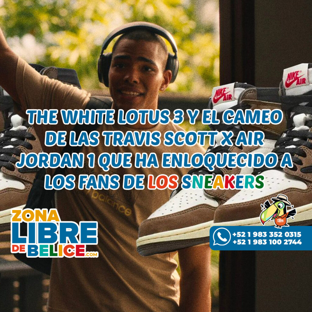 Zion lo sabe, siempre lo ha sabido. Y cuando llega White Lotus, percibe de inmediato que algo no va bien. Hay secretos ocultos bajo la reluciente superficie de ese paraíso artificial, y está decidido a descubrirlos. Sus Jordan se convierten entonces en algo más que un símbolo de rebeldía: representan su forma de moverse por el mundo, de mantenerse fiel a sí mismo mientras intenta ayudar a su madre a desenvolverse en un entorno que nunca ha estado realmente de su parte. No se trata solo de estilo, sino de sustancia. Son las zapatillas de quienes no temen ensuciarse, explorar, descubrir… De los que no aceptan las cosas como se las cuentan, sino que quieren verlo todo con claridad. Y sí, probablemente Zion también podría ser fan de Travis Scott.