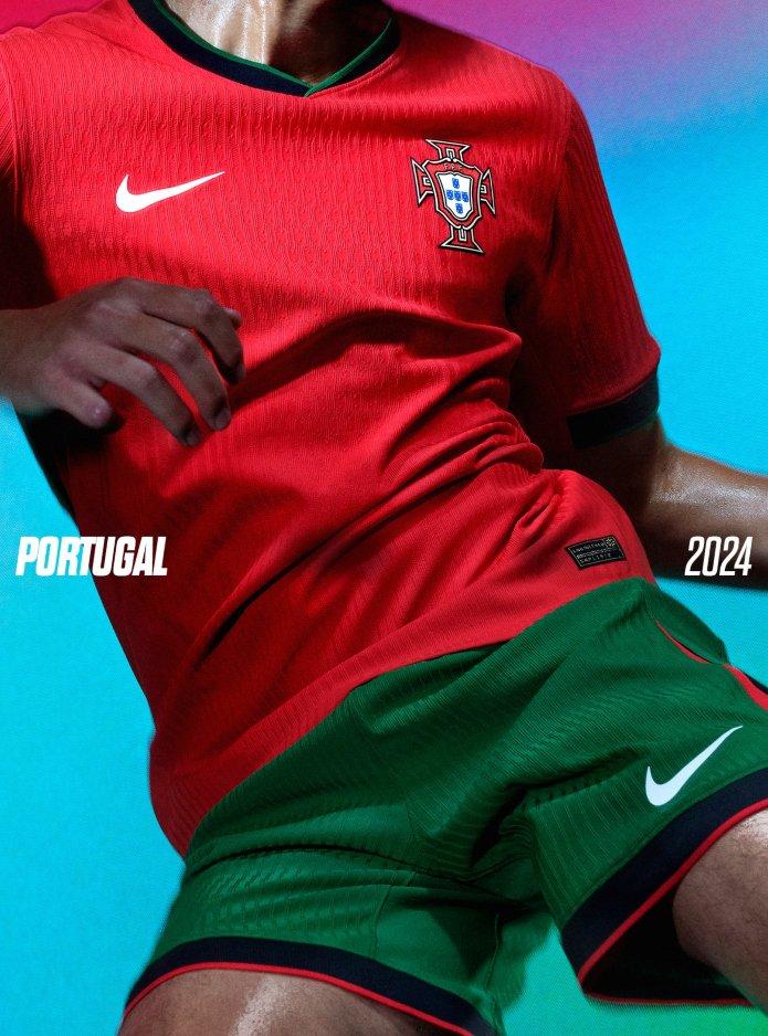 Los colores rojo y verde no podían faltar en la nueva camiseta de Portugal para 2024. Aunque, eso sí, desde Nike han querido darle un toque moderno y que refleje la pasión de los jugadores cada vez que saltan al terreno de juego. La equipación cuenta con un sutil estampado en relieve.