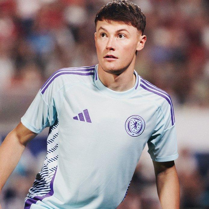 La selección escocesa de fútbol también se ha ganado su plaza para la Eurocopa masculina que se celebra este año. Su camiseta principal para 2024 está diseñada por adidas en azul oscuro con detalles en amarillo y en blanco. Lo que más destaca es el estampado de cubre la prenda y que está compuesto por cuadrados, rectángulos y franjas con un interior de líneas en diagonal.